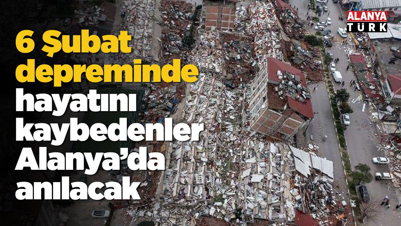 Alanya’daki Hatay, Kahramanmaraş, Adıyaman, Gaziantep, Doğu ve Güneydoğu illeri hemşehri dernekleri 6 Şubat 2023’te Kahramanmaraş depreminde hayatını kaybeden vatandaşlar için anma programı düzenleyecek. 6 Şubat’ta Alış Camii’nde saat 12.00’de büyük depremde hayatını kaybeden vatandaşlar için Cuma namazının ardından mevlid-i şerif okutulacak. Alanya’daki hemşehri dernekleri ardından saat 18.30’da Alanya Kültür Merkezi’nde anma programı düzenleyecek.