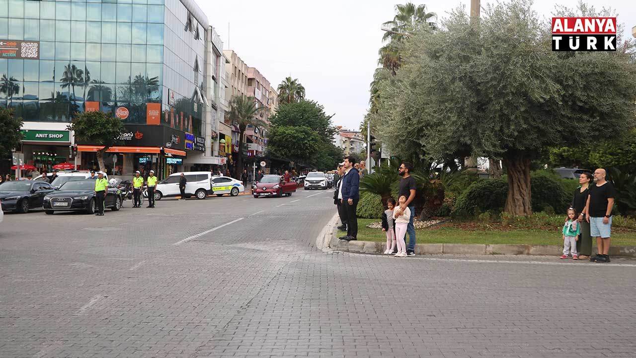 Türkiye Cumhuriyeti’nin kurucu lideri Gazi Mustafa Kemal Atatürk, ebediyete irtihalinin 87’nci yıl dönümünde tüm yurtta olduğu gibi Alanya’da da törenle anıldı. Hükümet Meydanı’nda düzenlenen 10 Kasım Atatürk’ü Anma Töreni’nde hayat adeta durdu. Alanya Kaymakamı Şakir Öner Öztürk, Antalya İl Alay Jandarma Komutan Yardımcısı Albay Engin Burak Mindivanlı, Alanya İlçe Jandarma Komutanı Yarbay Hüseyin Direk, Alanya İlçe Emniyet Müdürü Mustafa Hilmi Özgönül, kamu kurum ve kuruluş temsilcileri, siyasiler, sivil toplum kuruluşu üyeleri, öğrenciler ve çok sayıda vatandaşın katıldığı törende duygusal anlar yaşandı. Çelenk sunumu ile başlayan tören 2 dakikalık saygı duruşu ve İstiklal Marşı’nın okunmasıyla sona erdi. Alanya’da 2 dakikalık saygı duruşu sırasında adeta hayat durdu.