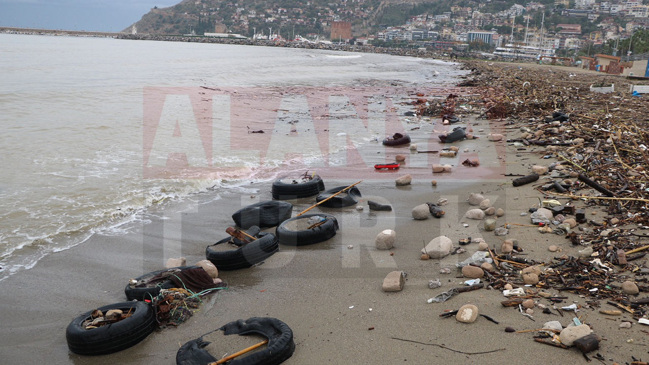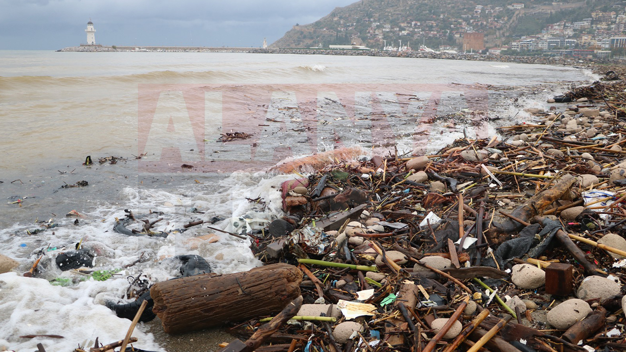Alanya’da son iki gündür etkili olan şiddetli yağış, fırtına ve dalga boyu, yalnızca yaşamı olumsuz etkilemekle kalmadı, çevre alarmını da beraberinde getirdi. Kentin birçok noktasında deniz, kıyıya taşıdığı çöp, odun parçaları, plastikler ve evsel atıklarla adeta “pisliğini kustu”. Sabah saatlerinde özellikle Galip Dere Plajı boyunca oluşan tablo, vatandaşların tepkisine neden oldu. Sahil bandı boyunca metrelerce uzanan çöp yığınlarının büyük bölümünün derelerle taşındığı, bir kısmının ise deniz dibinde biriken atıkların dev dalgalar nedeniyle karaya vurduğu görüldü.