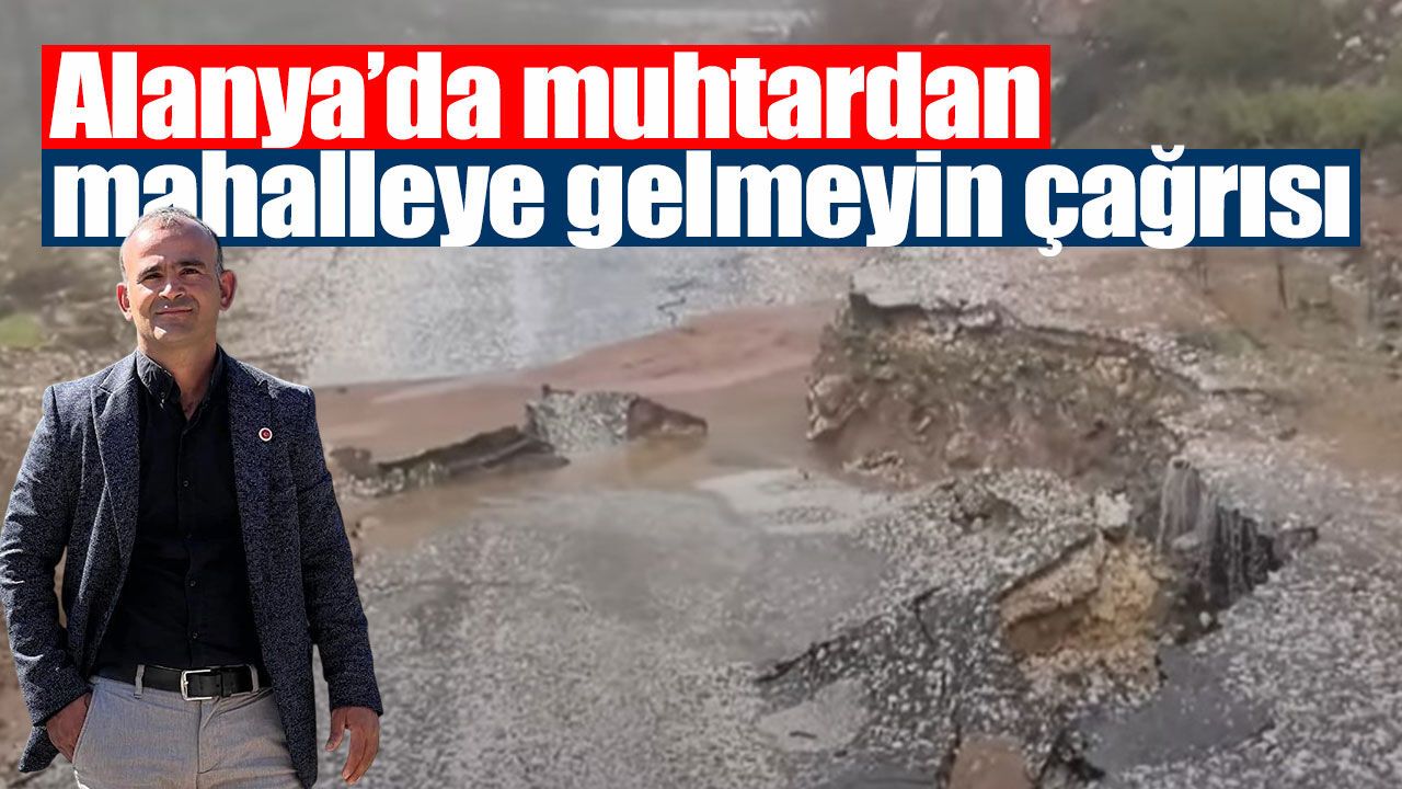 Alanya Dim Alacamii'nde aşırı yağışlar nedeniyle yol yaklaşık 50 santim çökerken, mahalleye giriş ve çıkışlar kapatıldı. Muhtar Kadir Kozak, "Yolumuz 50 santim çöktü. Bu nedenle mahalleye giriş ve çıkışlar yasaktır. Mahalleye gelmeyin" uyarısında bulundu.