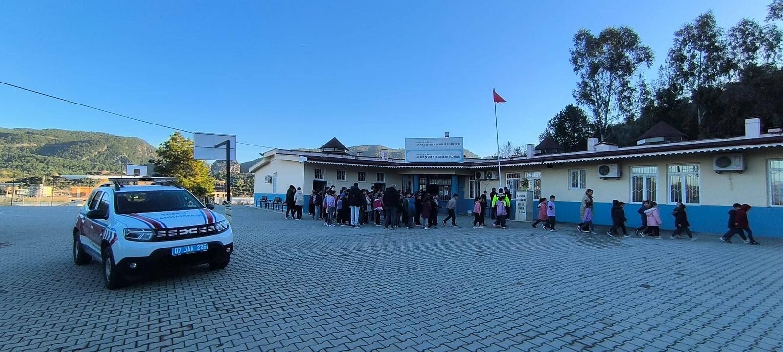 Alara Mahallesi’nde bulunan Şevket Demirel İlk ve Ortaokulu’nda düzenlenen eğitim programında 135 öğrenciye trafik kuralları hakkında bilgilendirme yapıldı. Seminerde öğrencilere genel trafik kuralları, okul servis araçlarında hareket tarzı, emniyet kemeri kullanımının önemi ile yaya geçitlerinde uyulması gereken kurallar anlatıldı. Yetkililer, öğrencilerde erken yaşta trafik bilinci oluşturmayı amaçlayan eğitim çalışmalarının belirli aralıklarla sürdürüleceğini bildirdi.