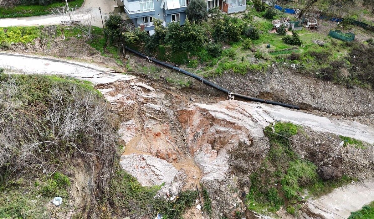Alanya'da geçen hafta günlerdir aralıklarla devam eden yağışın ardından dere yatağına yakın konumda bulunan evlerin çevresinde toprak kayması yaşandı. Yağmur suyunun zemini yumuşatması sonucu yolun bir bölümünde çökme meydana geldi.