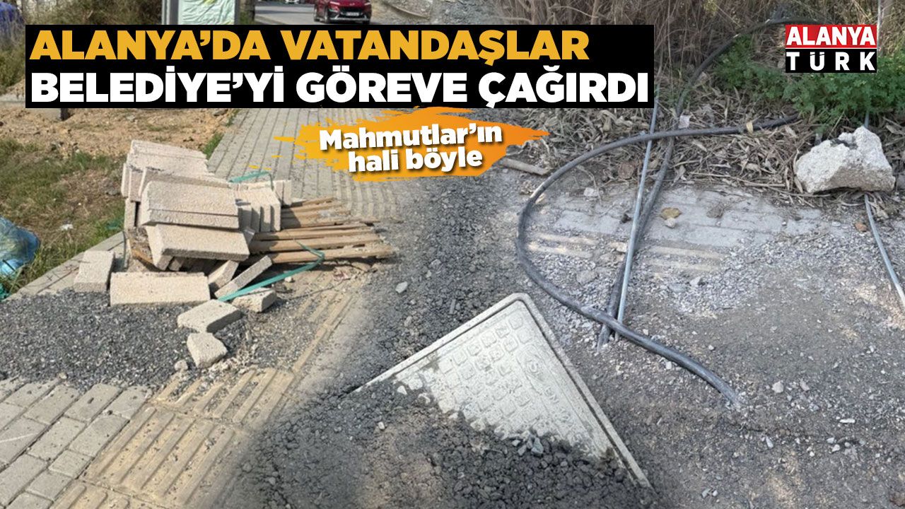 Mahmutlar Mahallesi, Yangılı Caddesi’nde gerçekleştirilen altyapı çalışmasın ardından kaldırımın bir kısmı bozuk halde bırakıldı. Çalışma sırasında kullanılan bazı malzemeler ise kaldırımın üzerine konuldu. Yaşanan durum nedeniyle Alanya Belediyesi’ne tepki gösteren vatandaşlar, “Belediye Başkanı Osman Tarık Özçelik, Başkan Yardımcısı Murat Levent Koçak ve Başkan Danışmanı Nazmi Zavlak, işte Mahmutlar’ın hali böyle. İsterseniz bunun gibi her gün yüzlerce fotoğraf atalım size. Halkımız buradaki yönetici kesim çalışmıyor diyor. Siz de bilmek istersiniz” diye konuştular.