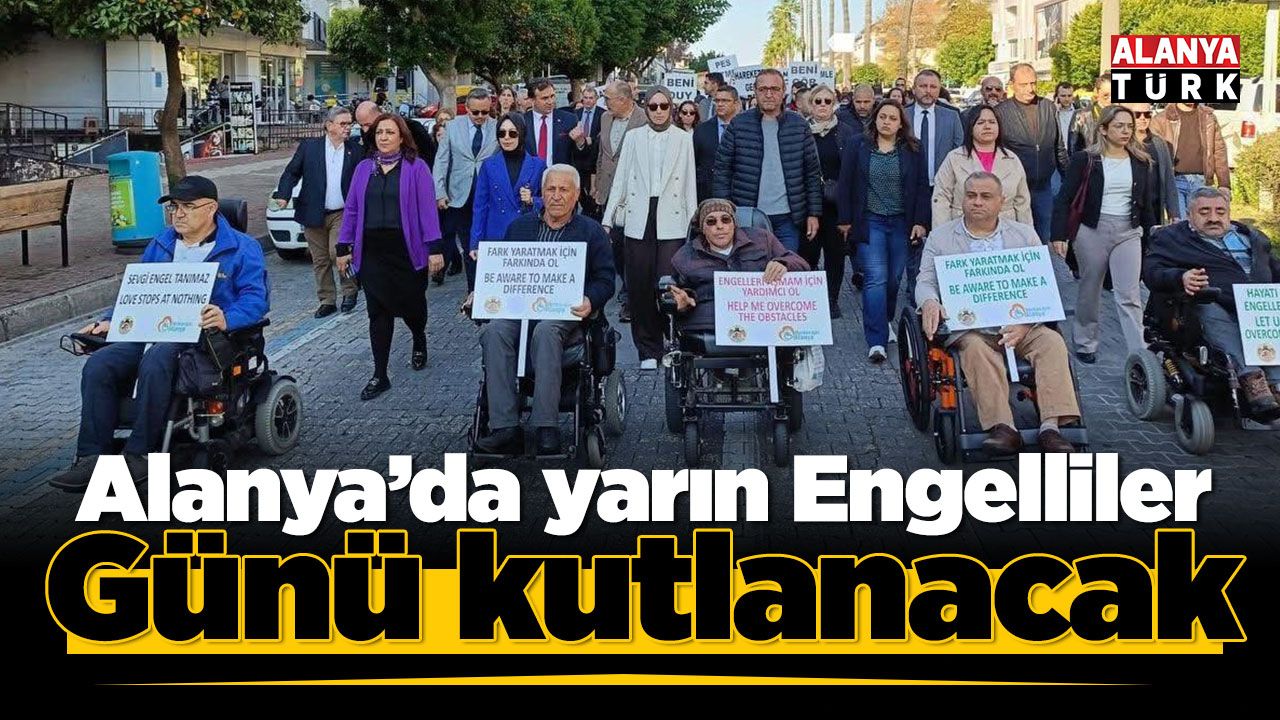 Alanya’da ‘3 Aralık Dünya Engelliler Günü’ yarın düzenlenecek çeşitli etkinliklerle kutlanacak. Alanya İlçe Milli Eğitim Müdürlüğü koordinesinde Alanya Özel Eğitim Meslek Okulu Müdürlüğü tarafından icra edilecek program saat 10.00’da iskeledeki Şelale Meydanı’ndan başlayacak. Bando eşliğinde yürüyüşe katılanlar çeşitli pankart ve dövizler eşliğinde Atatürk Anıtı’na kadar yürüyecek. Buradaki program Atatürk Anıtı’na çelenk sunulması, saygı duruşu ve İstiklal Marşı’nın okunması, günün anlam ve önemini belirten konuşma ve çeşitli gösteriler ile devam edecek.
