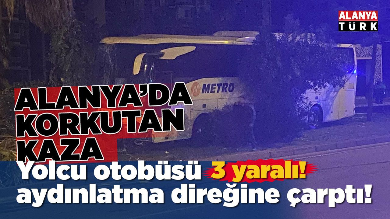 Kaza Konaklı Mahallesi D-400 karayolunda meydana geldi. İ.E. kontrolündeki 42 AFV 361 plakalı şehirlerarası yolcu otobüsü, refüjdeki aydınlatma direğine çarptı. Kazada otobüs şoförü İ.E. ile muavin O.A.(27) ve Fas uyruklu yolcu M.E.Z.(38) yaralandı. Kazayı gören çevredeki vatandaşlar durumu 112 Acil Çağrı Merkezi’ne bildirdi. İhbar üzerine bölgeye ambulans ve jandarma ekipleri sevk edildi. Yaralanan 3 kişi olay yerindeki müdahalenin ardından ambulans ile Alanya Eğitim ve Araştırma Hastanesi'ne kaldırıldı. Yaralıların sağlık durumunun iyi olduğu öğrenilirken, kaza nedeniyle bir süre trafiğe kapanan yol, direk ve otobüsün kaldırılmasının ardından yeniden açıldı.