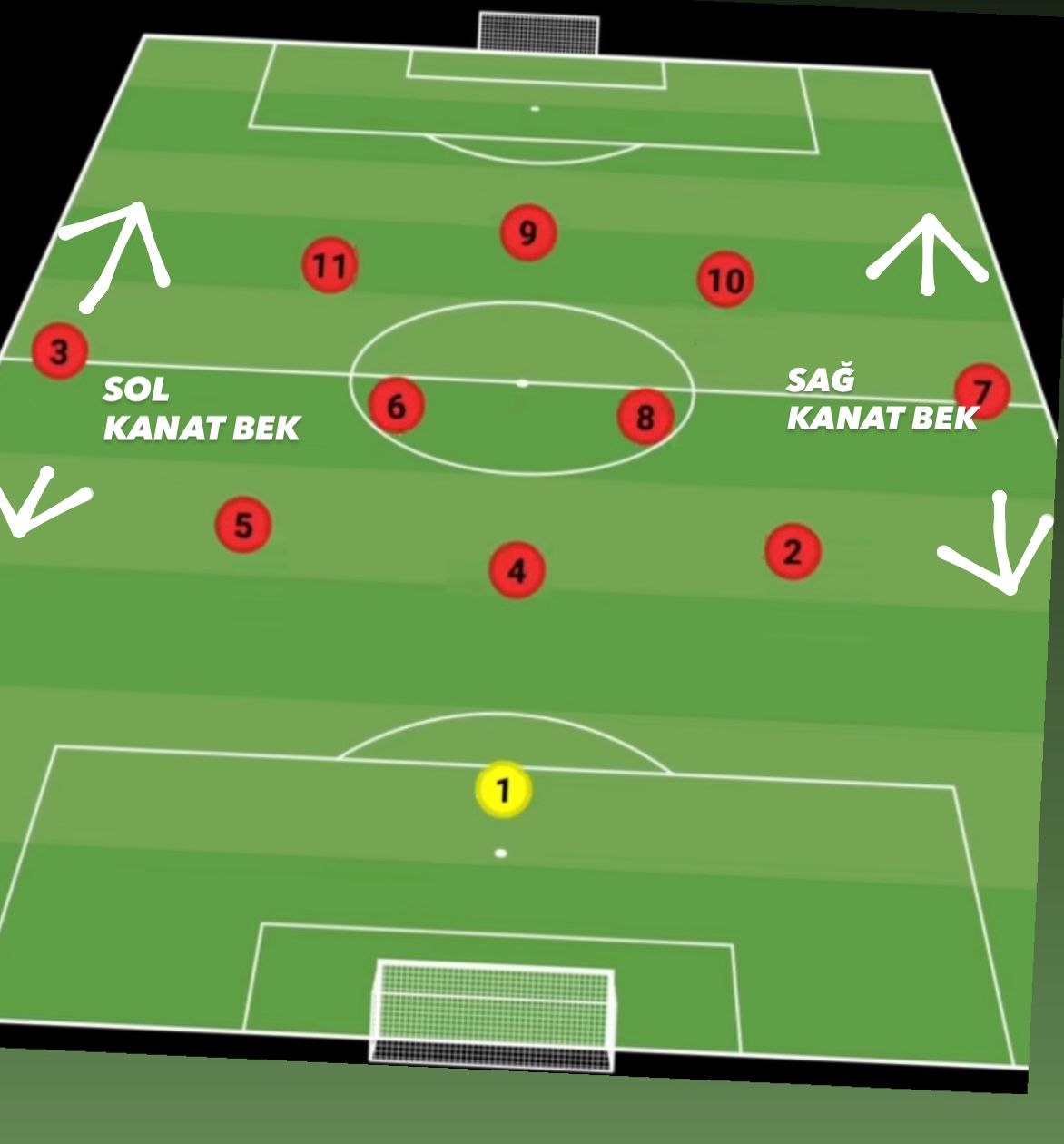 Görüldüğü gibi bu oyun planında gerek sağ kanat bek gerekse sol kanat bek defansif ve ofansif anlamda büyük öneme ve göreve sahiptir. Kanat beklerin yeterli performansı gösterememesi oyun planını ve sonucu direkt olarak etkilemektedir. Takımın, defansif ve ofansif opsiyonlarını, oyun planlarını direkt etkileyen bu iki bölgede tercihler direkt olarak skora yansımaktadır. Bu iki kanat bekler takımın nasıl defansif dizilişe sahip olacağını, ofansif olarak topla mı çıkılacak yoksa geçiş hücumu mu tercih edilecek hepsini etkilemektedir. İyi bir sağ bekin, iyi bir sağ kanat bek olamayacağını görmek gerekiyor. Ayrıca iyi bir sağ kanat bekin, iyi bir sol kanat bek olamayacağını da.