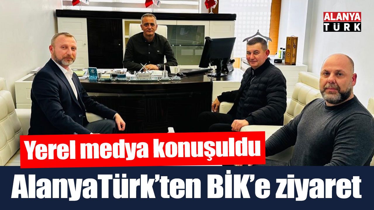 AlanyaTürk Gazetesi sahipleri Hasan Cantürk ve Mustafa Türkdoğan, Basın İlan Kurumu (BİK) Antalya Bölge Müdürü Mevlüt Uluçamlıbel’i ziyaret ettiler. Ziyarette BİK Antalya Bölge Müdürü Mevlüt Uluçamlıbel ile AlanyaTürk Gazetesi imtiyaz sahipleri Hasan Cantürk ve Mustafa Türkdoğan, Alanya basını ve yerel medya konusunda istişarelerde bulundular. Cantürk ve Türkdoğan, nazik misafirperverliği için teşekkür ettikleri Uluçamlıbel’e görevinde başarılar dilediler.