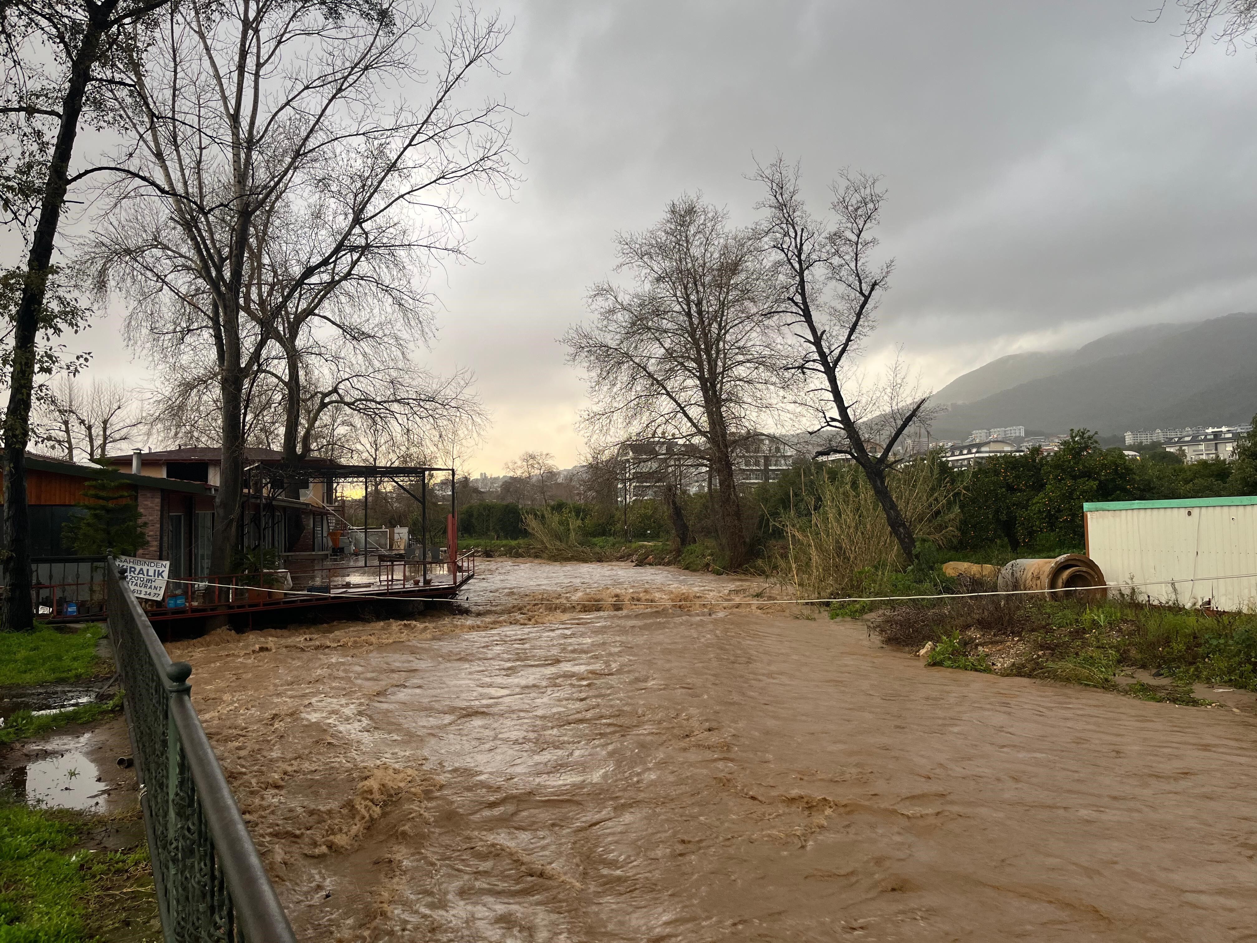 İhbar üzerine bölgeye sevk edilen itfaiye ekipleri, su tahliye çalışması başlattı. Ekipler, su dolan avluların boşaltılması için yoğun mesai harcadı. Çaydan taşan suların çevredeki tarım arazilerine de zarar verdi. Alanya At Çiftliği su altında kalırken, portakal bahçeleri de taşkından olumsuz etkilendi. Bahçelerde maddi hasar oluştuğu öğrenildi.