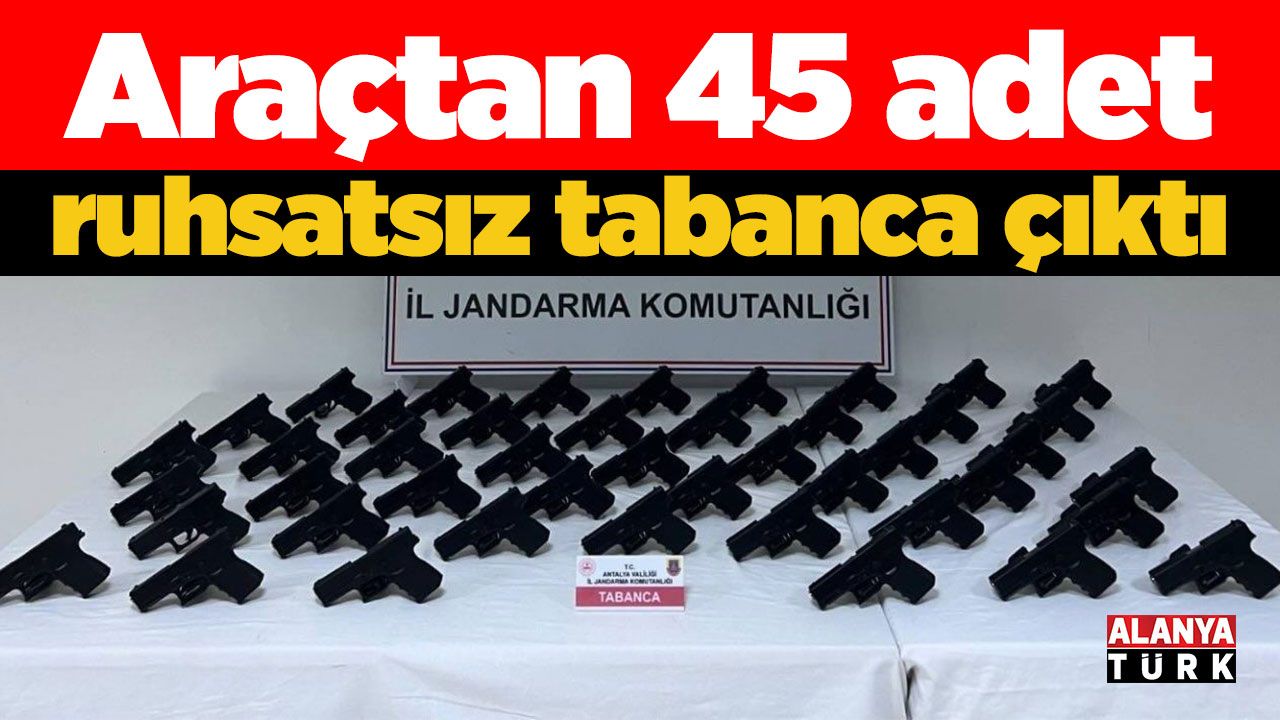 Antalya İl Jandarma Komutanlığınca yürütülen çalışmalar kapsamında, Serik Cumhuriyet Başsavcılığı talimatları doğrultusunda silah kaçakçılığı yaptığı tespit edilen şüphelilere yönelik operasyon gerçekleştirildi. Ekiplerce yapılan takip ve araştırmalar sonucunda, Serik ilçesinde ateşli silahlarla işlenen bazı olaylarda kullanılan tabancaların ticaretini yaptığı belirlenen bir şüpheliye ait araç durduruldu. Araçta yapılan aramada 45 adet Glock marka 9 mm ruhsatsız tabanca ile 45 adet tabanca şarjörü ele geçirildi. Şüpheli gözaltına alınırken, olayla ilgili adli tahkikatın devam ettiği bildirildi.
