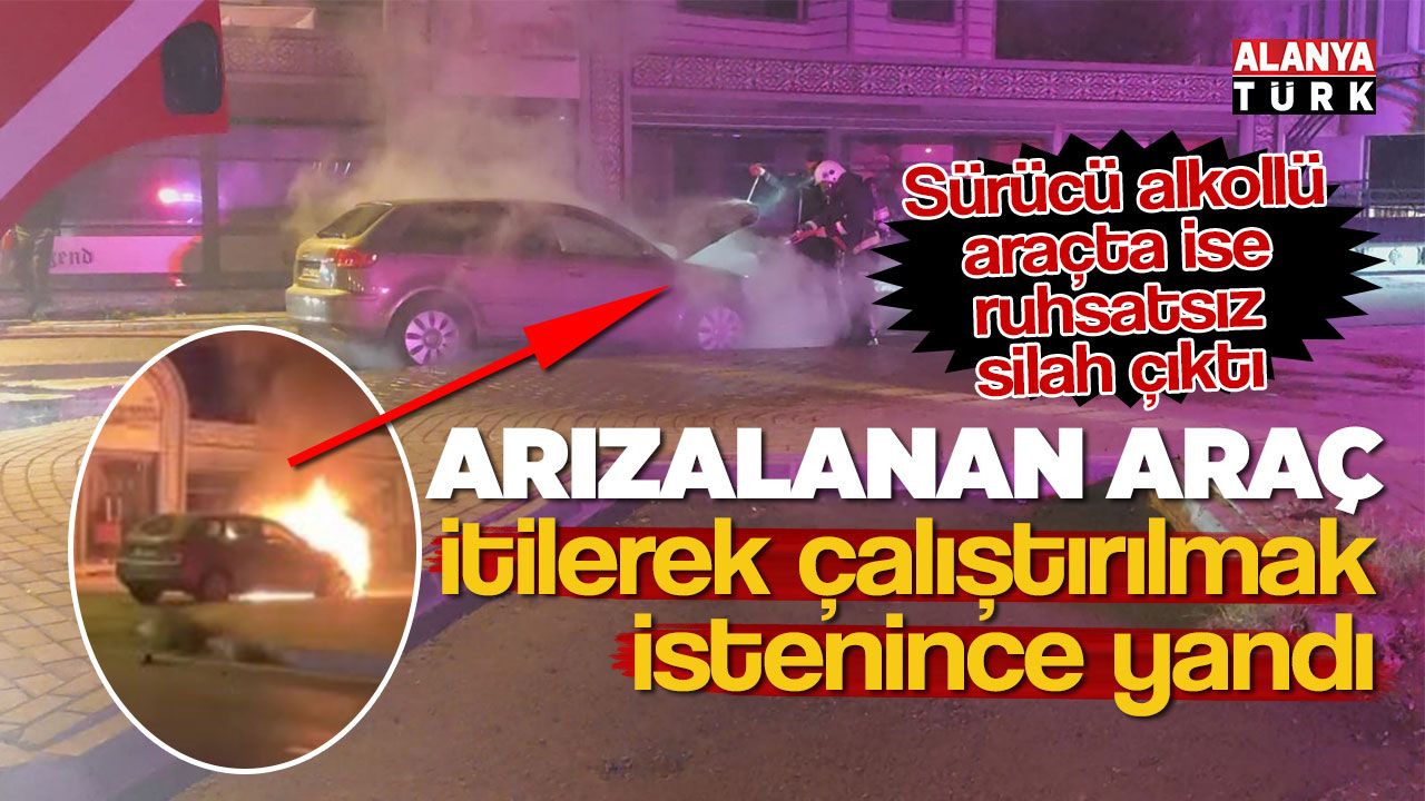 E.O.’nun kullandığı 34 AD 7170 plakalı Audi marka otomobilin 4517 sokakta seyir halindeyken arızalanarak çalışmadığı, yoldan geçen motosikletlilerden yardım isteyen otomobil sürücüsünün otomatik olan otomobilini iterek çalıştırmak istediği sırada aracın motor bölümünün yanmaya başladığı öğrenildi. Yangının söndürülmesinin ardından aracı kullanan E.O.’nun 2.11 promil alkollü olduğu, otomobilin içerisinde de ruhsatsız tabanca bulunduğu belirlendi.