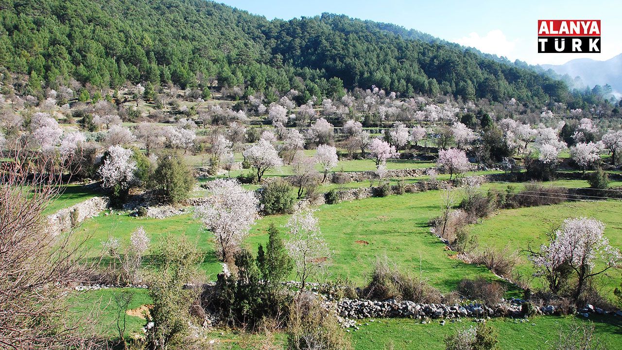 Akseki'nin kırsal mahallelerinden, sedir ağaçlarıyla dikkat çeken Alaçeşme Mahallesi ise yeşil ile badem çiçeklerinin beyaz tonlarının buluşmasıyla ayrı bir güzelliğe büründü.