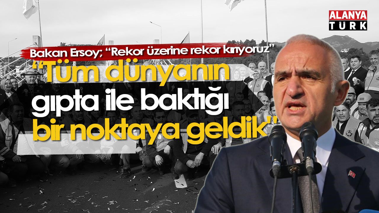 Antalya turizmine önemli katkılar sağladıklarını belirten Mehmet Nuri Ersoy, "Kültür sahasında da Cumhuriyet tarihimizin ilklerini gerçekleştirmekte, rekor üzerine rekor kırmayı sürdürmekteyiz. Geleceğe Miras ve Taş Tepeler gibi sadece ülkemizin değil dünyanın en önemli ve büyük arkeoloji çalışmaları bir yandan devam ediyor. Geleceğe Miras Projemiz ile Antalya'mıza önemli kazanımlar sağladık. Asdendos, Phaselis, Olympos ve özellikle Side antik kentlerinde yürüttüğümüz çalışmalar ile tüm dünyanın gıpta ile baktığı bir noktaya geldik. Bu antik kentlerimiz adeta eski ihtişamlı günlerine döndürüyoruz ve buraları ziyaret eden herkesin o dönemi olabildiğince yaşayabileceği, hissedebileceği bir atmosfer inşa ediyoruz. İlkleri gerçekleştirerek, özgün çalışmalarla öncülük ederek ülkemize ve halkımıza layık oldukları hizmetleri, proje ve eserleri kazandırmaya devam edeceğiz. Bu yolda, Ulaştırma ve Altyapı Bakanlığımız gibi kendi hizmet sahalarında tarih yazan ilgili tüm bakanlıklarımızla omuz omuza yürümeye, en güçlü şekilde iş birliği yürütmeye devam edeceğiz. Ülkemiz ve aziz milletimiz için daima en büyük hedefleri önümüze koyacak, hamasetten uzak akılcı projeler, doğru uygulamalarla bu hedeflere ulaşacak ve durup dinlenmeden daha büyüklerine ilerlemeyi sürdüreceğiz. Sayın Cumhurbaşkanımızın liderliğinde Türkiye Yüzyılı vizyonunu gerçekleştirecek, Allah'ın izniyle Türk asrının kapılarını açacağız" şeklinde konuştu.