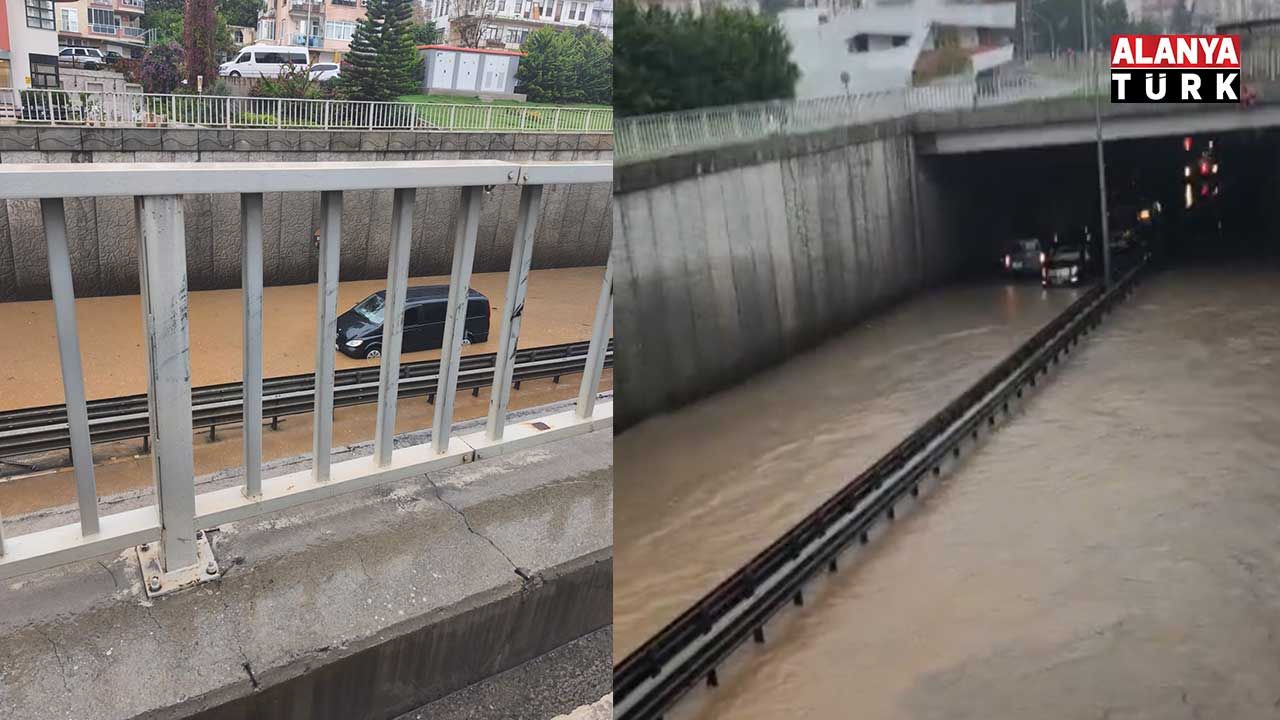 Alanya’da sağanak yağışlar trafiği de olumsuz etkiledi. Yağışlara direksiyon başında yakalanan bazı sürücüler köprülü kavşaklarda suların birikmesi sonucu araçları ile mahsur kaldı. Aşırı yağışlar nedeniyle Telekom Kavşağı’nda aracıyla bir araç mahsur kaldı. Köprülü kavşağın sular altında kalması sonucu bazı araçlar ilerleyemeyince trafikte kuyruklar oluştu.
