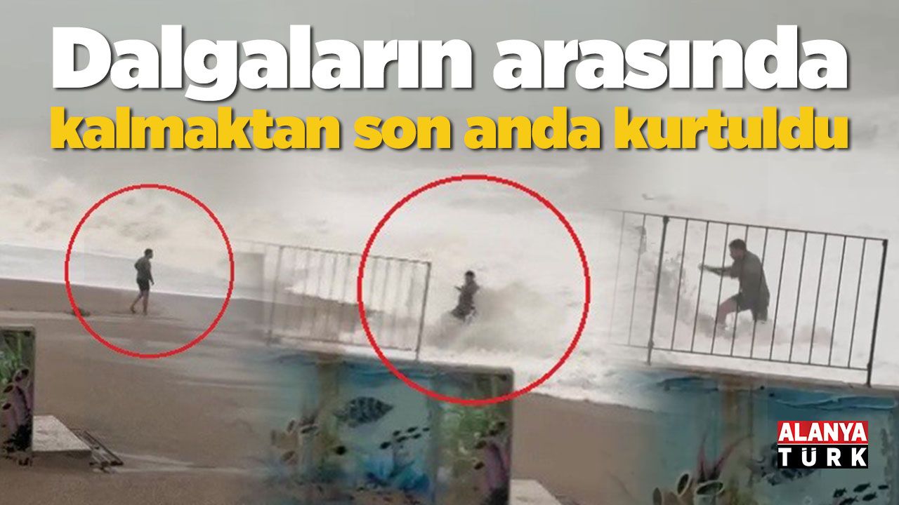 Meteoroloji 4. Bölge Müdürlüğü'nün Sarı Kod ile uyardığı Antalya'da şiddetli rüzgar etkisiyle denizde oluşan dev dalgalar, Konyaaltı Sahili'ni dövdü. Deniz suyu bazı noktalarda sahil bandına kadar ulaştı. Yağışa aldırış etmeyen bazı vatandaşlar Konyaaltı Sahili'nde denizi ve oluşan dalgaları izledi. Kimi vatandaşlar sahil bandına vuran dalgaları cep telefonu kamerası ile kayda aldı. Konyaaltı Sahili’nde zaman zaman yüksekliği 2 metreyi aşan dalgaların arasında video çekmek isteyen bir vatandaş ise zor anlar yaşadı. Paçalarını sıvayarak sahile inen vatandaş, bir anda üzerine doğru gelen kuvvetli dalgayı görünce panikle koşmaya başladı. O anlar bir başka vatandaşın cep telefonu kamerasına yansırken, sahile inen vatandaş ise dalgaların arasında kalmaktan kıyıdaki bir merdivene tutunarak son anda kurtuldu.
