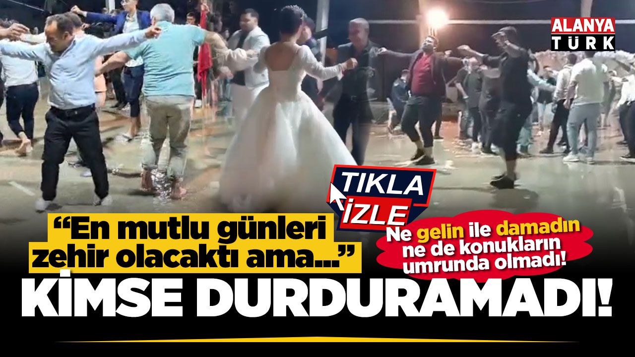 Serik ilçesinde Sultan ve Onur Eroğlu çiftinin düğününde, dün akşam sağanak yağışın ardından oyun alanının suyla dolmasına rağmen eğlence kesintisiz devam etti. Yeni Mahalle Aydın Park'ta kapalı alan içerisinde düzenlenen düğünde, yağmur sonrası biriken su, piste girdi. Gelin, damat ve davetliler, kısa süreli şaşkınlık yaşamasına rağmen eğlenceden vazgeçmedi.
