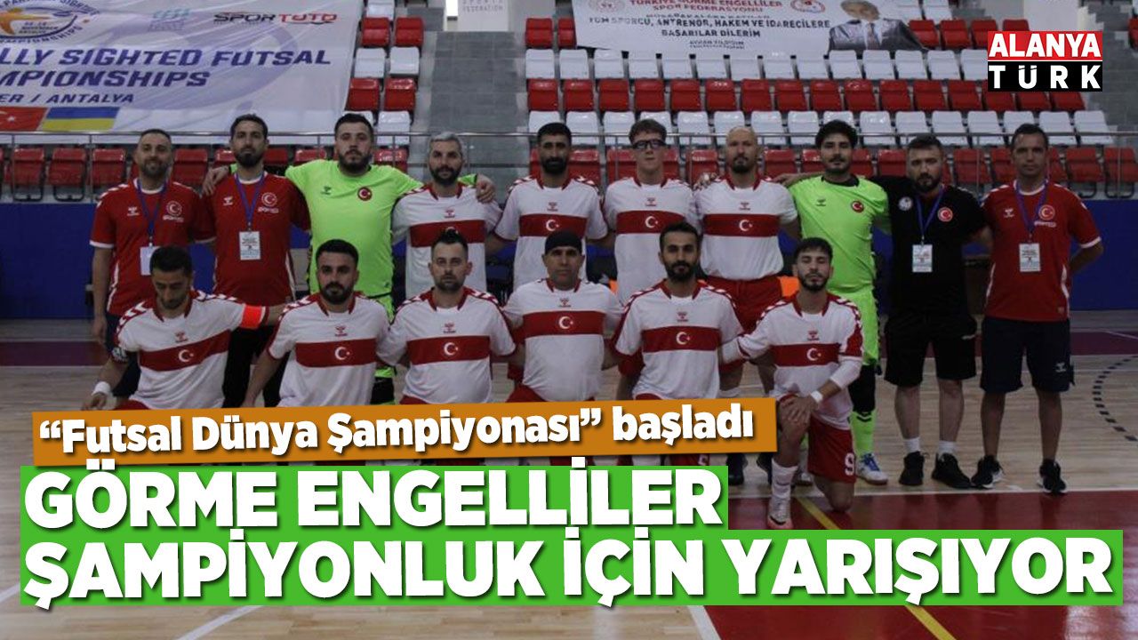 Görme engelliler sporunda dünyanın en önemli organizasyonlarından biri olan IBSA Kısmi Görme Engelliler Futsal Dünya Şampiyonası, Türkiye Görme Engelliler Spor Federasyonu ev sahipliğinde Antalya'da başladı. Serik Spor Salonu'nda düzenlenen organizasyonda Türkiye, Ukrayna, Japonya ve İngiltere mücadele ediyor. İlk gün oynanan karşılaşmalarda ev sahibi Türkiye, Japonya ile karşı karşıya geldi. Karşılaşmayı Türk Milli takımı 5-3 lük skorla kazandı. Maç Türkiye'nin gollerini Hamdi Aydemir (3), Furkan Ergin, Mahir Kazan, Japonya'nın gollerini ise Kei Akasaki (3) kaydetti. Günün diğer maçında ise İngiltere ve Ukrayna karşılaştı. Karşılaşma 2-2'lik skorla sona erdi. Şampiyonada 11 Kasım Salı günü Türkiye - Ukrayna, İngiltere - Japonya karşılaşmaları oynanacak, 15 Kasım Cumartesi günü oynanacak final ve üçüncülük maçlarıyla IBSA Kısmi Görme Engelliler Futsal Dünya Şampiyonası sona erecek.