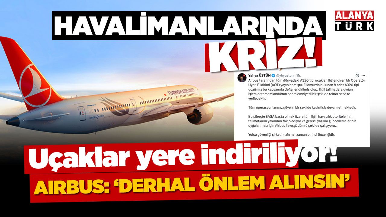 Airbus'ın A320 uçakları için yayınladığı güvenlik uyarısı sonrası, THY'de 8, AJet'te 7 ve Pegasus'ta belirli A320 uçakları geçici olarak yere indirilirken, tüm havayolu şirketleri EASA ve Airbus ile koordineli şekilde kontrolleri tamamlayıp güvenli uçuşları sürdürüyor. Konuya ilişkin şirket yöneticilerinden açıklamalar üst üste geldi.