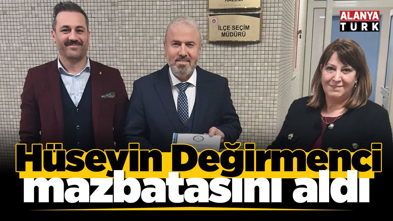 Alanya Otelciler Pansiyoncular Lokantacılar Kafeteryacılar Turistik Eşya Satıcıları Odası’nın 8 Ocak’ta düzenlenen 10’uncu genel kurulunda 558 oy alarak tekrar başkan seçilen Hüseyin Değirmenci, İlçe Seçim Kurulu’na giderek mazbatasını aldı. Mazbatasını alan Değirmenci, “Mazbatamızı İlçe Seçim Kurulu müdiresi Sayın Saliha Kozok hanımefendiden teslim aldık. Bu süreçte bizleri yalnız bırakmayan, bu onurlu görevi bizlere layık gören tüm esnaf kardeşlerime ayrı ayrı teşekkür ederim” dedi.