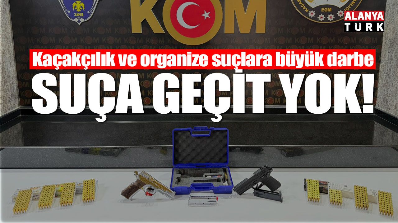 Antalya Emniyet Müdürlüğü Kaçakçılık ve Organize Suçlarla Mücadele Şube Müdürlüğü ekiplerince il genelinde son 1 haftada gerçekleştirilen operasyonlarda, kaçakçılık ve organize suçlara yönelik önemli sonuçlar elde edildi. Yürütülen çalışmalar kapsamında 6136 Sayılı Kanuna Muhalefet suçundan 1 olayda 1 şüpheli şahıs tutuklandı. Yapılan aramalarda 2 adet tabanca ve 380 adet fişek ele geçirildi.