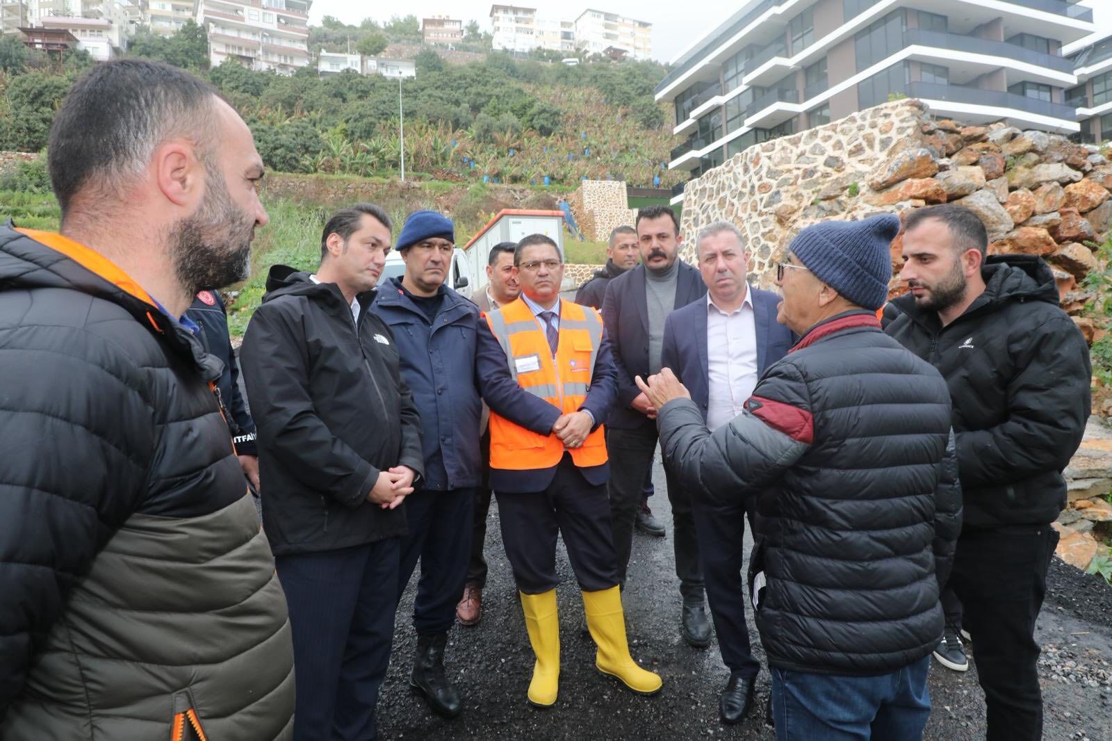 İlk olarak su baskınlarının yaşandığı Dinek bölgesini ziyaret eden Alanya Kaymakamı Şakir Öner Öztürk yetkililerden son durum hakkında bilgiler alarak tahliye ve temizlik çalışmalarını yerinde inceledi.