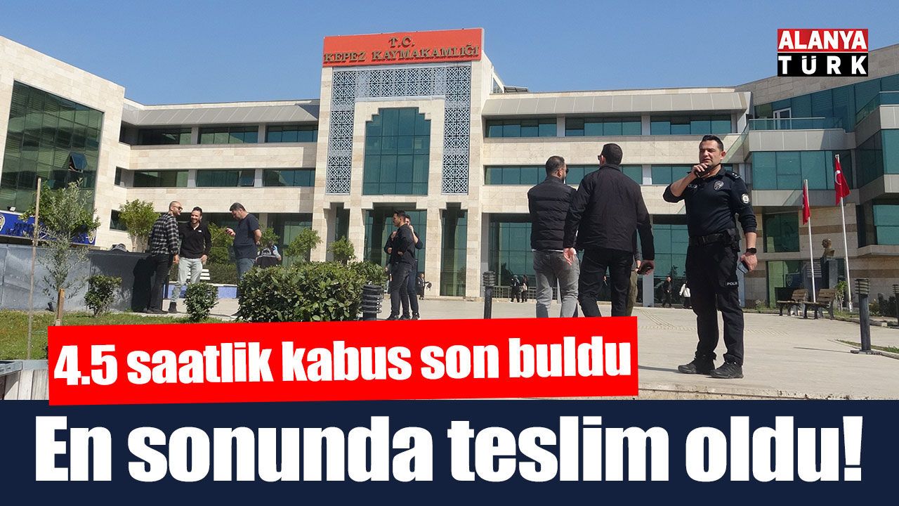 Silah sesleri üzerine olay yerine çok sayıda polis ve sağlık ekibi sevk edildi. Tedbir amacıyla kaymakamlık binasında bulunan personel ve vatandaşlar tahliye edildi. Olay yerine Özel Harekat polisleri de sevk edilirken, kaymakamlık binası çevresinde geniş güvenlik önlemleri alındı. Kendisini bir odaya kilitleyen ve hayatına son vereceğini söyleyen Mahmut Y. kendisini ikna etmek için gelen müzakereci personel ile yaptığı yaklaşık 4.5 saat süren görüşmenin sonunda saat 15.30 sıralarında silahını bırakarak teslim oldu. Mahmut Y. ifade işlemleri için Antalya Emniyet Müdürlüğü'ne götürüldü.