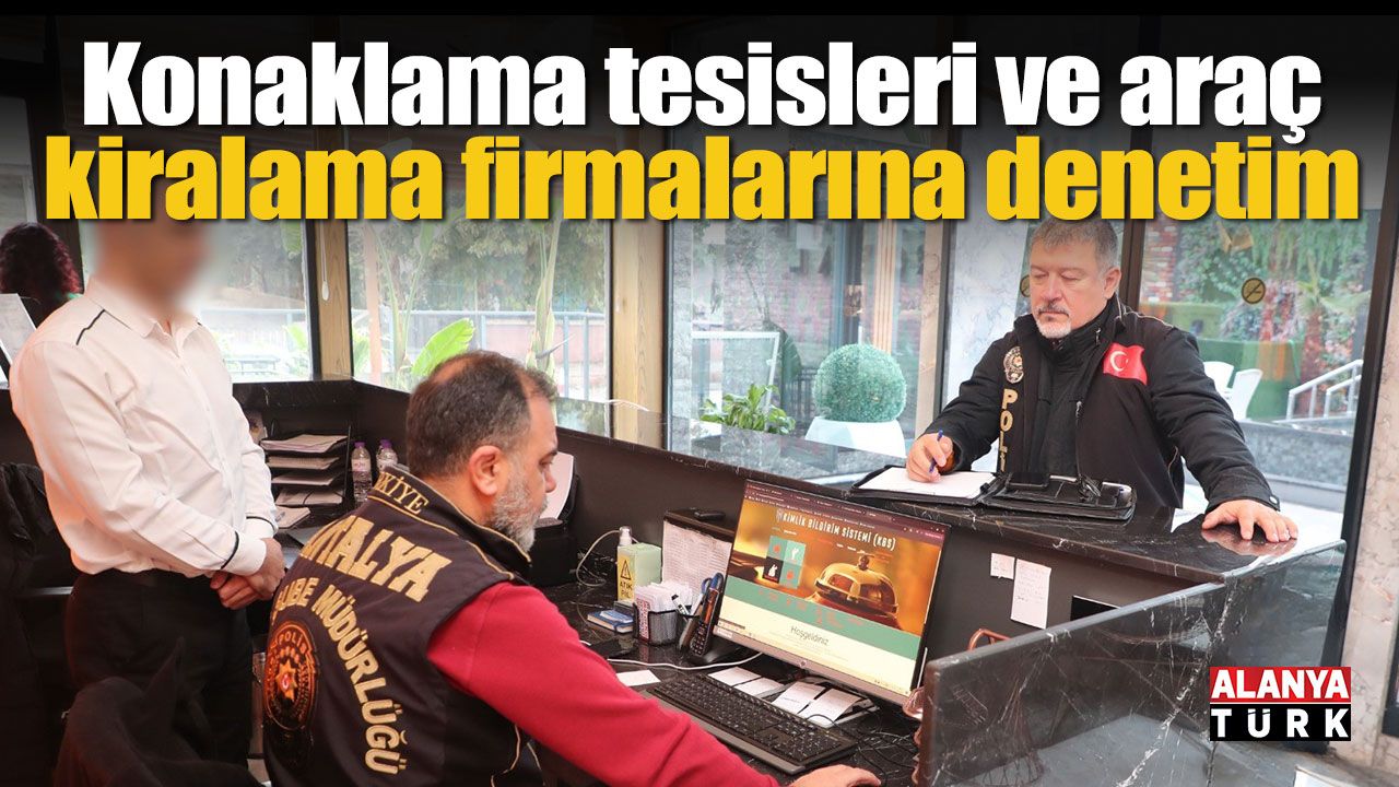Antalya İl Emniyet Müdürlüğü ekipleri tarafından mevcut asayiş ve kamu düzeninin korunması, genel güvenlik ve genel sağlık açısından risk oluşturan unsurların engellenmesi, suça karışmış kişilerin yakalanması ve kayıt dışı ekonomiyle mücadele edilmesi amacıyla 1774 Sayılı Kimlik Bildirme Kanunu kapsamında il genelinde faaliyet gösteren konaklama tesislerine yönelik denetimler gerçekleştirildi. Son iki haftada 93 ekip ve 239 personelin katılımıyla yapılan eş zamanlı denetimlerde 792 konaklama tesisi, 67 kayıtsız günübirlik konaklama yeri ile 51 araç kiralama firması kontrol edildi. Denetimlerde Kiralık Araç Bildirim Sistemi (KABİS) kaydı olmaksızın araç kiralamak ve sözleşme kayıtlarını usulüne uygun tutmamak nedeniyle 2 araç kiralama firmasına, anlık veri göndermediği tespit edilen 8 işletmeye, çalışan bildirimi yapmayan 3 işletmeye ve kayıtsız konaklama yaptırdığı belirlenen 15 şahsa cezai işlem uygulandı.