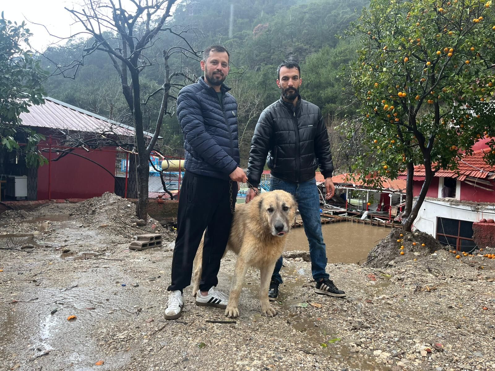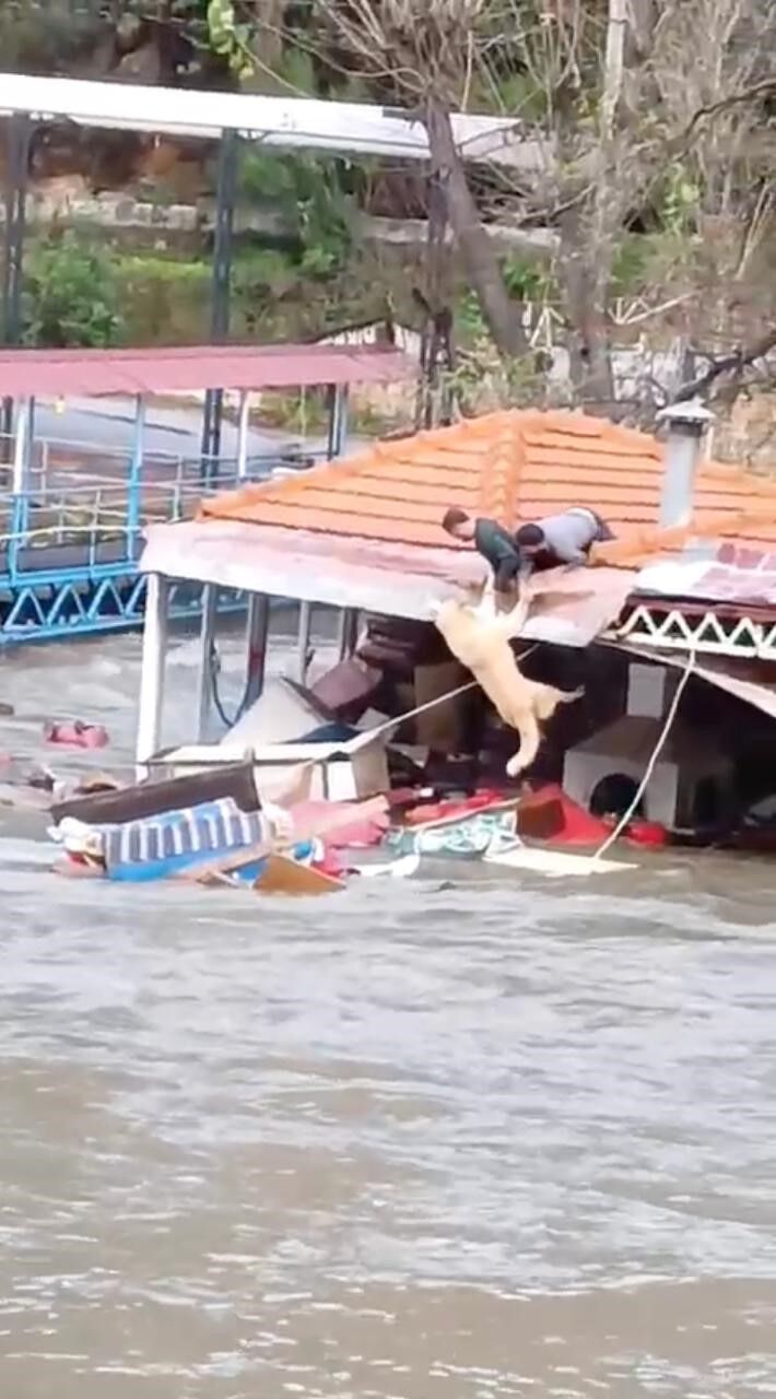İşletmeye ait 'Paşa' lakaplı köpeği kurtardıkları anları anlatan işletme sahibi Serkan Şimşek, "O akşam aşırı yağmur vardı. Bizleri buradan tahliye ettiler. Sabah geldiğimizde köpeğimiz paşa orada kalmış. Hemen kurtarmak için çalışmaya başladık. Arkadaşı çağırdım. Oradan bir kapı bulduk. Kapının üzerine kaymasın diye battaniye serdim. Kapının üzerinden tırmanmasını sağladık sonra tutup güçte olsa yukarı çekmeyi başardık" dedi.