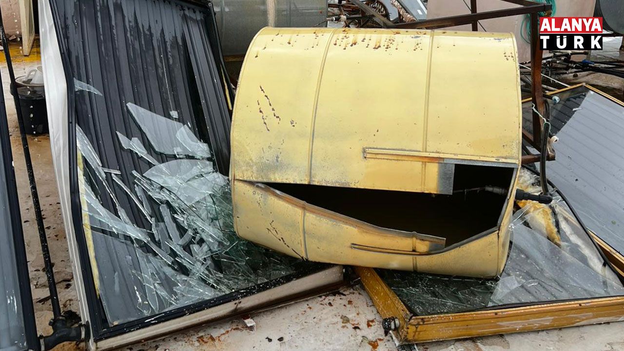 Meteoroloji 4. Bölge Müdürlüğü’nün Alanya için kuvvetli yağış uyarısının ardından ilçede önceki gece kuvvetli rüzgar etkili oldu. Rüzgarın etkisiyle Hacımehmetli Mahallesi, Şehit Coşkun Nazilli Sokak’ta bulunan bir evin çatısında yer alan su deposu devrildi. Deponun devrilmesi sonucu güneş enerjisi sisteminin bir kısmı zarar gördü.