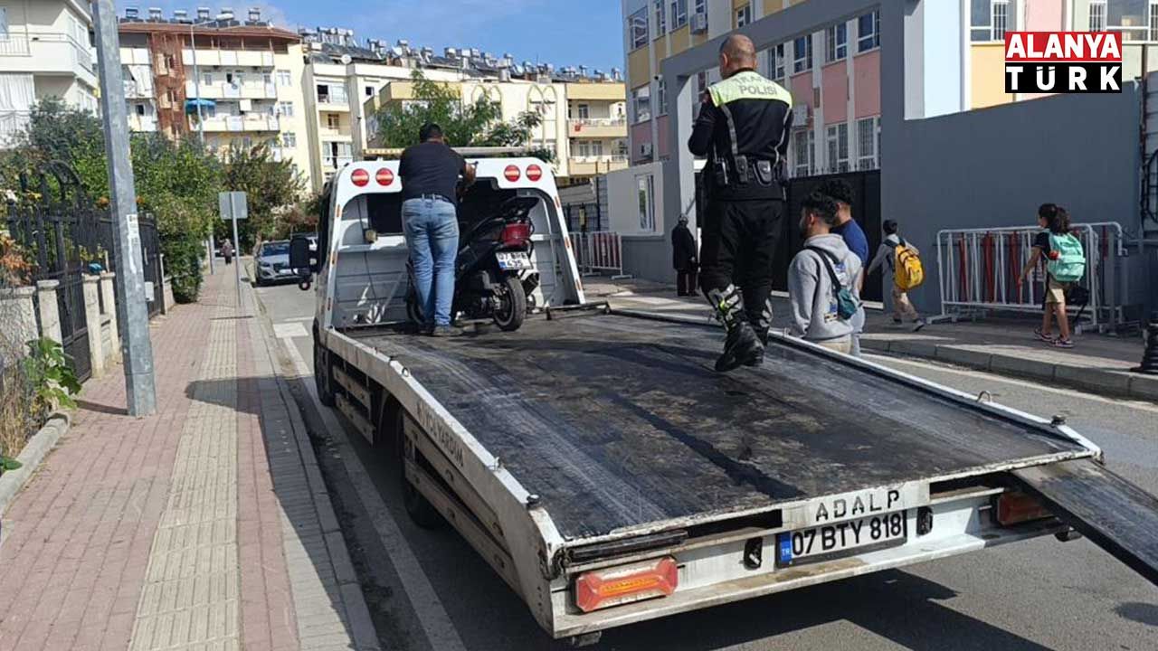 Edinilen bilgiye göre, Manavgat Emniyet Müdürlüğü Trafik Denetleme Büro Amirliği’ne bağlı Yunus timleri, 75. Yıl İlköğretim Okulu yönetiminin tehlike arz eden motosiklete yönelik ihbarı üzerine harekete geçti. Okul önünde durdurulan motosikleti kullanan küçük yaştaki Mert Kaymaz’ın sürücü belgesinin bulunmadığı, motosikletin plakasız olduğu ve aynalarının takılı olmadığı tespit edildi. Ayrıca motosikletin abartı egzoz nedeniyle gürültü kirliliğine sebep olduğu belirlendi. Sürücünün sonradan getirilip takılan plaka ise cezayı azaltmaya yetmedi. Tespit edilen kusurlar nedeniyle motosiklet sürücüsü ile araç sahibine toplam 63 bin 326 TL idari para cezası uygulandı. Trafik ekipleri tarafından trafikten men edilen motosiklet, çekici yardımıyla yediemin otoparkına kaldırıldı. – İHA