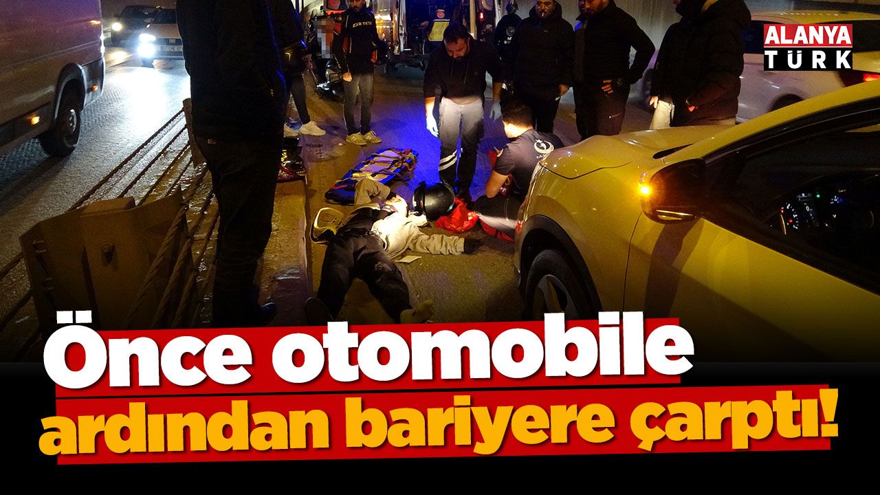 Ancak motosikletin süratli, mesafenin ise kısa olması nedeniyle duramayarak önünde ilerlemekte olan 07 ABE 266 plakalı Nissan marka otomobile çarptı. Çarpmanın etkisiyle savrulan motosiklet sürücüsü bariyerlere çarptı. Grupta bulunan arkadaşları ve diğer sürücülerin ihbarı ile olay yerine polis, sağlık ve itfaiye ekipleri sevk edildi. Genç motosikletliye ilk müdahale yoldan geçen vatandaşlar ve arkadaşları tarafından yapıldı. Verilen adrese gelen 112 Acil Sağlık ekipleri tarafından bacağında kırıklar olduğu belirlenen motosiklet sürücüsü Emir K.E. ilk müdahalesinin ardından ambulansla hastaneye götürüldü.