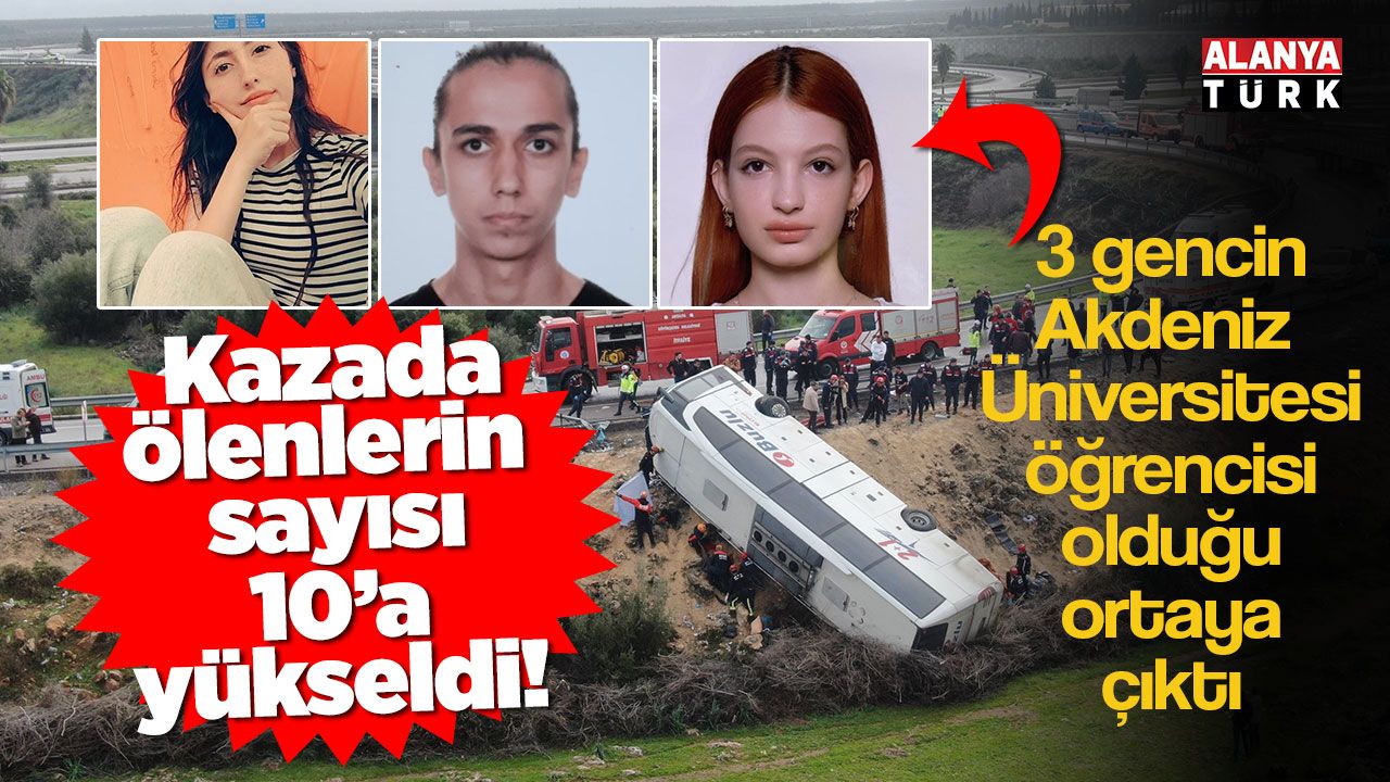 Kaza, Döşemealtı ilçesi Kömücüler Mahallesi Kuzey Çevreyolu girişinde sabah saat 10.30 sıralarında meydana gelmişti. Dün akşam Tekirdağ'dan Antalya'ya doğru yola çıkan ve içerisinde 34 yolcu ile mürettebatın bulunduğu İzzet Karağaç idaresindeki 26 ABG 022 plakalı yolcu otobüsü, çok katlı kavşağa geldiği sırada yoğun sis ve kayganlaşan yol sebebiyle sürücünün direksiyon hakimiyetini kaybetmesi sonucu yol kenarındaki beton bariyerlere çarparak yan yatmıştı. Yaklaşık 90 metre sürüklenen otobüs, bariyerleri aşarak yaklaşık 15 metrelik şarampole devrilmişti. Kazada 8 kişi olay yerinde hayatını kaybederken, ağır yaralı olarak hastaneye kaldırılan sürücü İzzet Karaağaç da kurtarılamamıştı. Yaralıların hastanelerdeki tedavileri sürerken, durumu ağır olan yolculardan Sudem Çakmak (19) da kaldırıldığı Antalya Şehir Hastanesinde hayatını kaybetti. Çakmak ile birlikte kazada hayatını kaybedenlerin sayısı 10'a yükseldi.