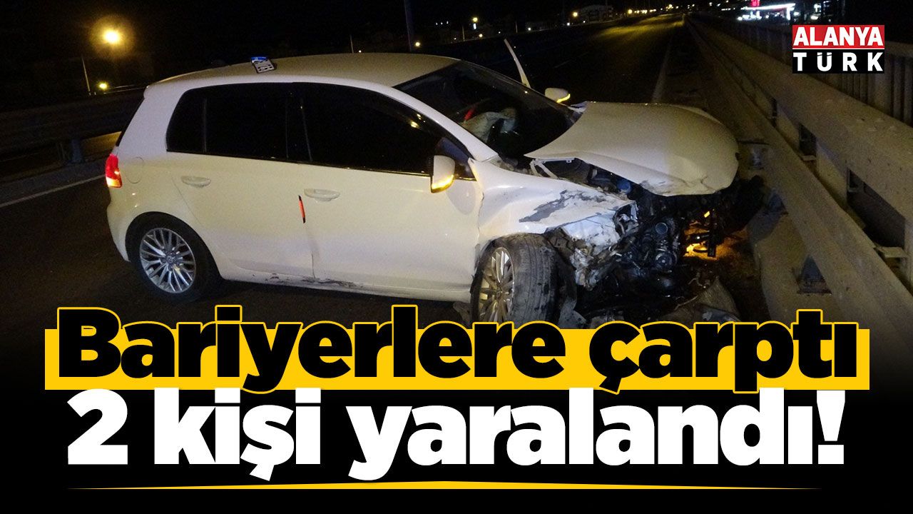 Edinilen bilgiye göre, Antalya-Alanya D-400 Karayolunda Sinan S. yönetimindeki 07 EYB 25 plakalı otomobil, köprülü kavşak üzerinde kontrolden çıkarak bariyerlere çarptı. Otomobilin hurdaya döndüğü kazada sürücü ile araçta yolcu olarak bulunan Hasan G. yaralandı. İhbar üzerine olay yerine sevk edilen 112 Acil Sağlık ekipleri tarafından ilk müdahaleleri yapılan yaralılar, ambulansla hastaneye kaldırıldı. Yaralıların hayati tehlikelerinin bulunmadığı öğrenildi.