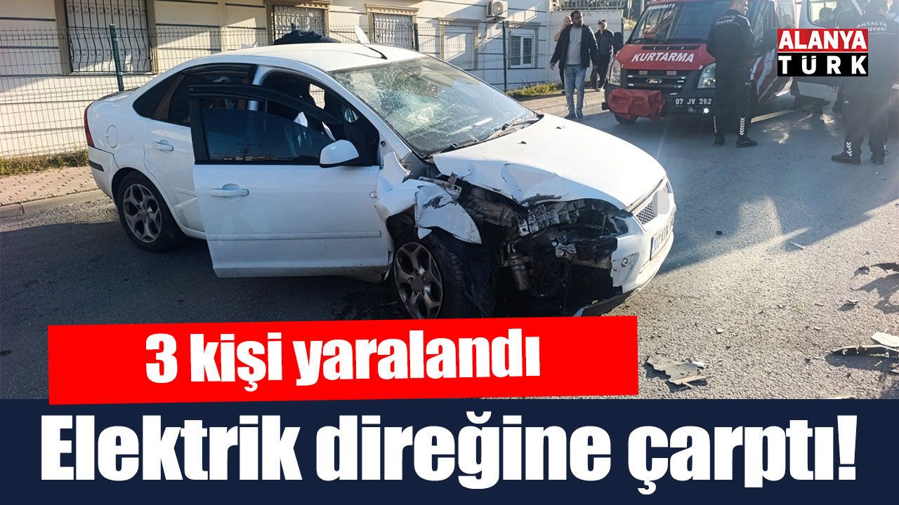Kaza, Manavgat ilçesi Kasaplar Mahallesi 8513 Sokakta Şeyh Şamil Caddesi üzerinde meydana geldi. Edinilen bilgiye göre, Türkbeleni istikametine seyreden Hamit D.'nin kullandığı 07 ATK 366 plakalı otomobil, Özgürlük Parkı yanında kontrolden çıkarak yolun sağındaki elektrik direğine çarptı. Kazada sürücü Hamit D. ile yanındaki Yusuf T. ve Musa D. yaralandı. Yaralılar, 112 sağlık ekiplerinin olay yerindeki müdahalesinin ardından ambulansla hastaneye götürüldü. Kazayla ilgili inceleme başlatıldı.