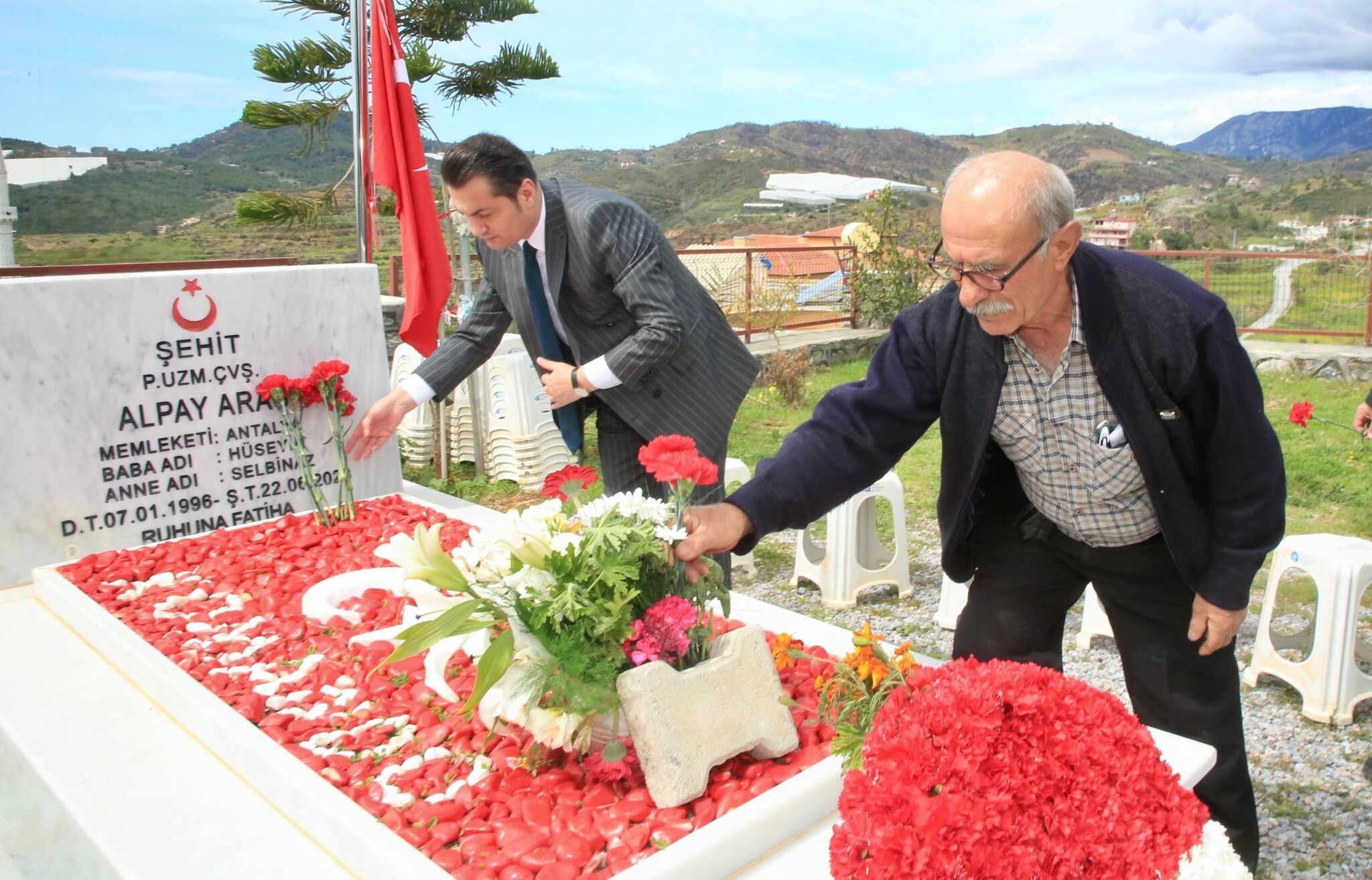 Ardından Şehit Alpay Aras’ın baba ocağına misafir olan Kaymakam Öztürk, aile üyeleri ile bayramlaştı. "Aziz şehitlerimizin emanetlerinin her zaman yanınızdayız" mesajını yineleyen Öztürk, daha sonra şehidin kabrini ziyaret etti. Okunan Kur'an-ı Kerim tilaveti ve edilen duaların ardından Şehit Alpay Aras rahmetle anıldı.