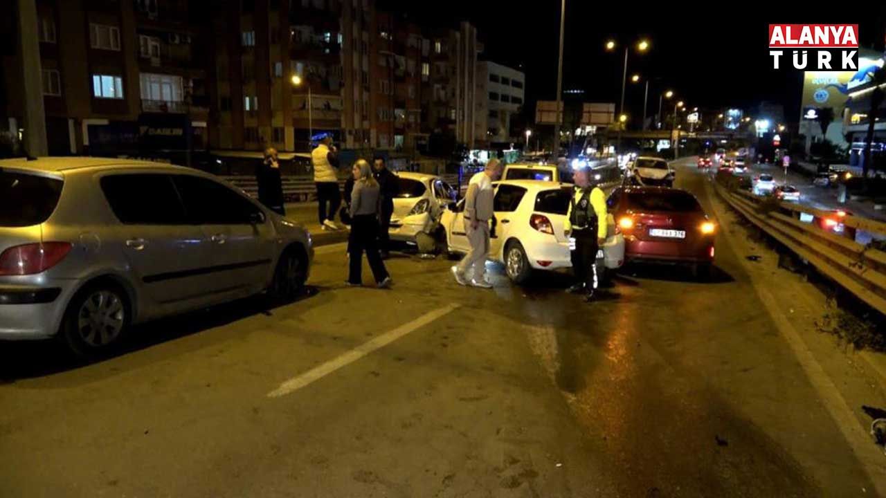 Kaza, Muratpaşa'nın Kızılırmak Caddesi'nde gece saat 23.30 sıralarında meydana geldi. Edinilen bilgiye göre, Kızılırmak Caddesi'nden Adnan Menderes Bulvarı'na ilerleyen 45 TM 266 plakalı otomobil, sürücüsünün direksiyon hakimiyetini kaybetmesi sonucu refüje çarpıp bulvar üzerinde yan döndü. O sırada arkadan gelen araçlar duramayarak birbirine çarptı. 45 TM 266 plakalı otomobilin yanı sıra 07 ALL 508, 34 NPZ 024, 07 BBA 376, 07 FPP 59 ve 07 GA 662 plakalı araçlarda maddi hasar meydana gelen kazada 1 kişi yaralandı. Yaralı, olay yerine sevk edilen ambulansla hastaneye kaldırıldı. Polis ekipleri güvenlik tedbiri alarak, üst kavşağı bir süre trafiğe kapattı. Kapatılan kavşaktan geri dönen bazı araçlar ise ters yönden giderek alternatif yol güzergahına döndü. Kazayla ilgili inceleme başlatıldı. - İHA