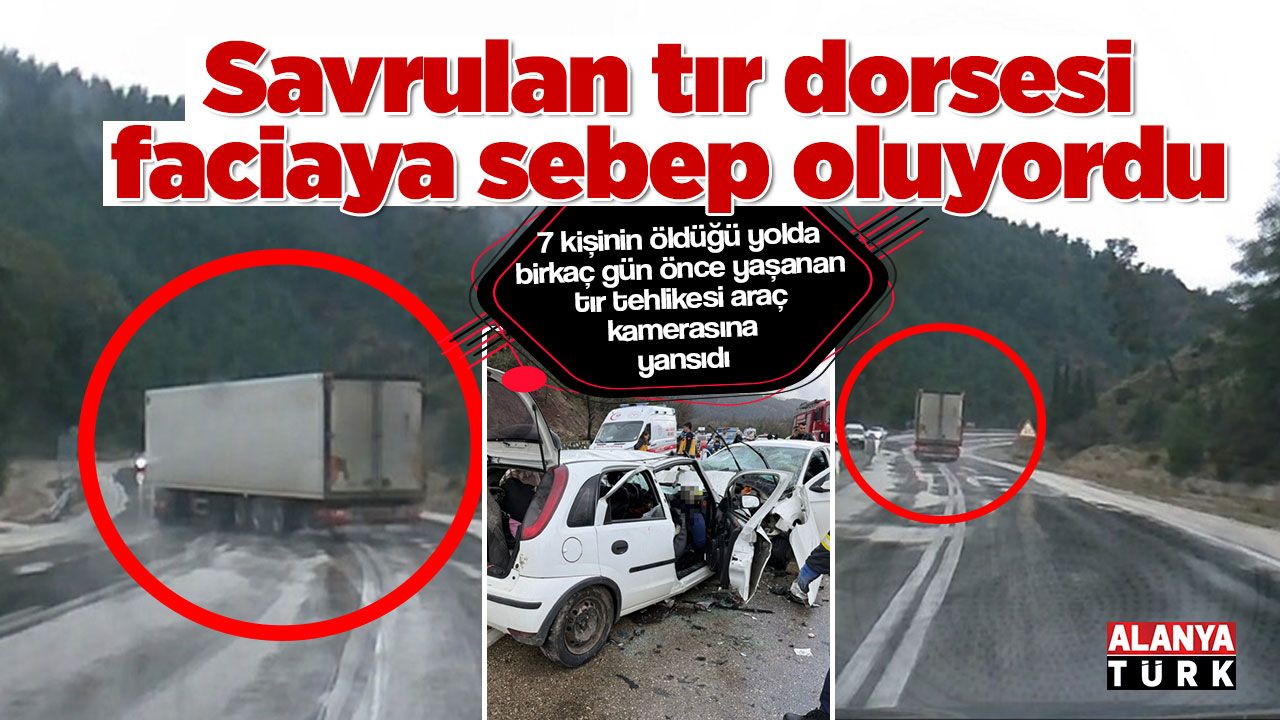 Olay, geçtiğimiz günlerde Burdur'un Ağlasun ilçesine bağlı Antalya–Isparta kara yolunun Isparta istikameti Aşağı Yumrutaş mevkiinde meydana geldi. Edinilen bilgilere göre, yağmurun etkisiyle kayganlaşan yolda kontrolden çıkan bir tır ve dorsesi bir anda savrularak yolu kapladı. Tır sürücüsünün yaptığı manevra sayesinde araç yeniden kontrol altına alınırken, yaşanan tehlikeli anlar tırın arkasından gelen bir otomobilin araç kamerasına saniye saniye yansıdı. Görüntülerde, çift şeritli yolda karşı yönden gelen araçların da bulunduğu ve muhtemel bir facianın kıl payı atlatıldığı görüldü. Olayda herhangi bir yaralanma yaşanmazken, yaşananlar sürücüleri korkuttu.