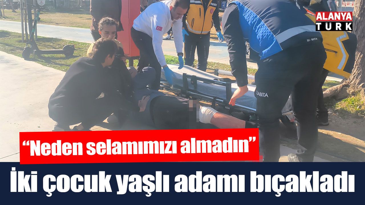 Olay, saat 16.00 sıralarında Muratpaşa ilçesi Bahçelievler Mahallesi Konyaaltı Beach Park içerisinde meydana geldi. Edinilen bilgiye göre, Konyaaltı sahilinde yeşillik alanda oturan Ali Erhan O. (70) ile yoldan geçmekte olan 2 çocuk arasında tartışma çıktı. "Neden selam almıyorsun" diyerek Ali Erhan O.'yu bacağından bıçaklayan 2 çocuk hızla olay yerinden kaçarken, yaşlı adamın yardımına özel güvenlik görevlileri ve vatandaşlar koştu. 112 Acil Çağrı Merkezi'ne yapılan ihbar üzerine bölgeye polis ve sağlık ekipleri sevk edildi. Olay yerine gelen sağlık ekiplerinin ilk müdahaleyi yaptığı Ali Erhan O. ambulansla hastaneye kaldırıldı. 2 şüpheli ise, olay yerine birkaç yüz metre mesafede Motorize Yunus Timleri ve özel güvenlik görevlileri tarafından yakalandı.