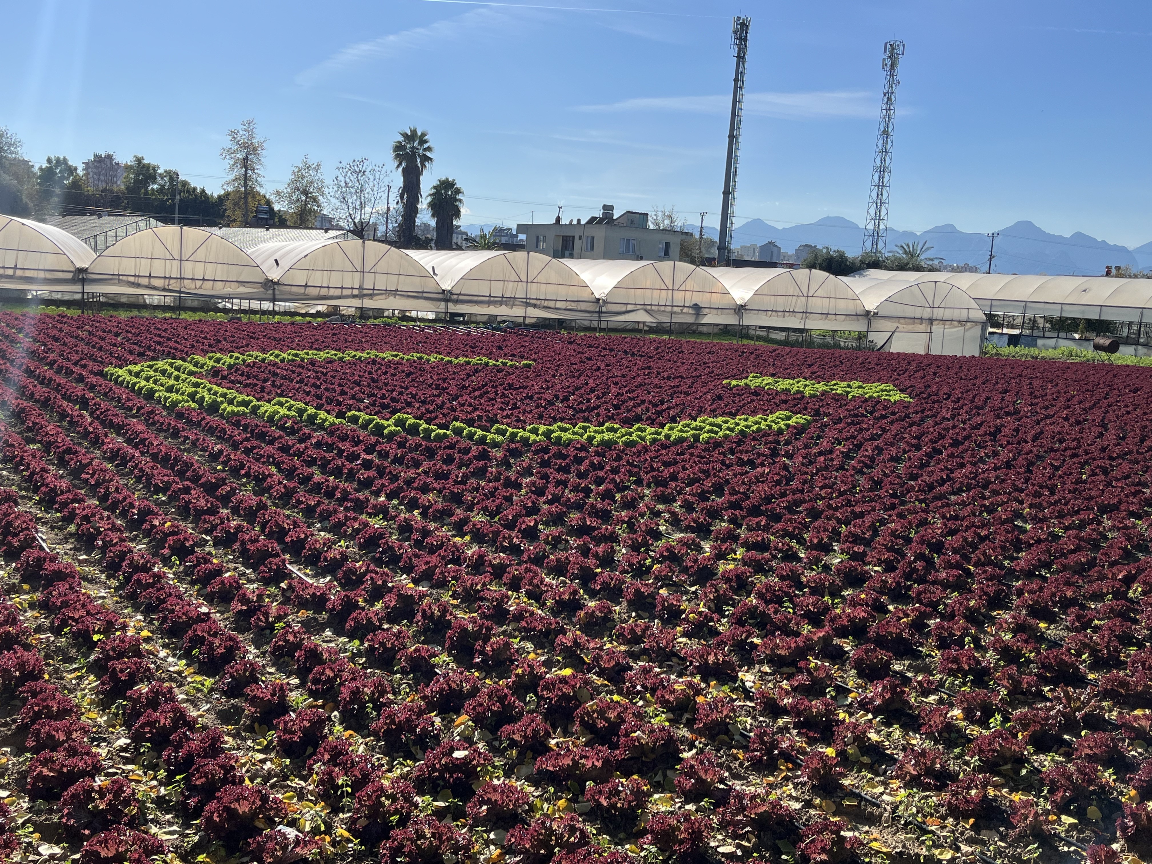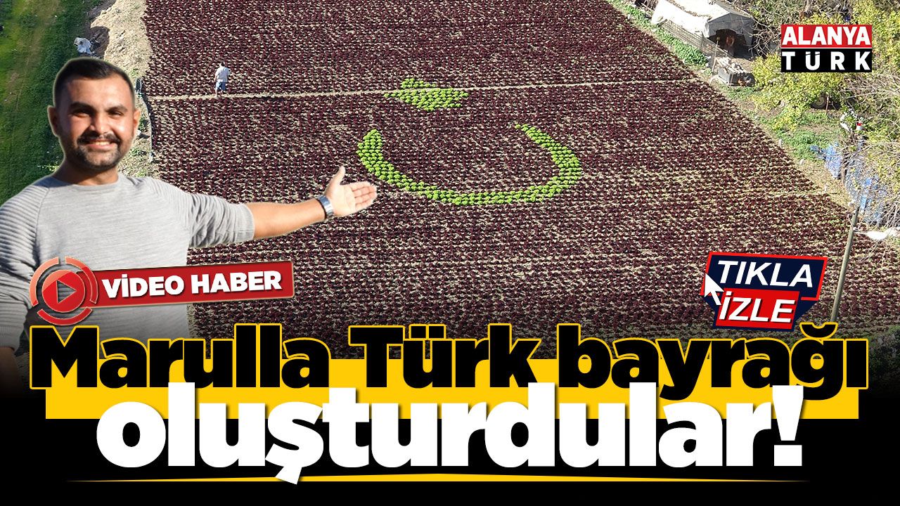 Muratpaşa ilçesi Zümrütova Mahallesi'nde iki üreticinin bir buçuk dönümlük araziye yerleştirdikleri binlerce marulu özel bir düzenle dikerek oluşturduğu Türk bayrağı deseni dikkat çekti. Kırmızı yapraklı marulların arasına yerleştirilen açık yeşil kıvırcık marullarla verilen hilal ve yıldız formu, bölgeden geçenlerin yoğun ilgisini çekiyor.