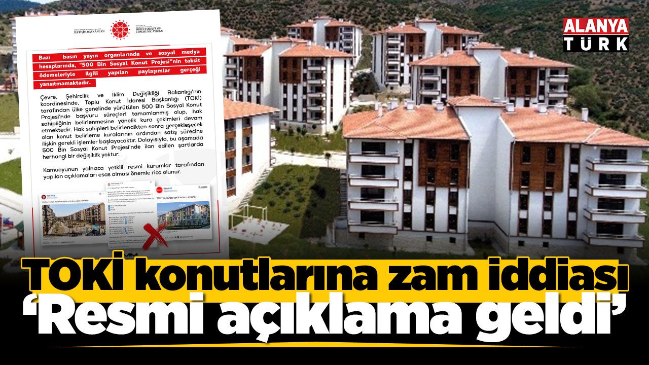 Antalya’da 10 Ocak 2026 tarihinde kura çekimi yapılacak olan Çevre, Şehircilik ve İklim Değişikliği Bakanlığı Toplu Konut İdaresi Başkanlığı (TOKİ) konutlarına ilişkin ortaya kafa karıştırıcı bir iddia atıldı. İddiaya göre; memur maaş zammına endekslenen TOKİ evleri, memurların ocak zammı netleşince yeniden fiyatlandı. Henüz 46 il için kura çekimi yapılmadığı için bu illerinde taksitle ödemeleri arttığı öne sürüldü. İletişim Başkanlığı ise söz konusu bu iddialara cevap verdi.