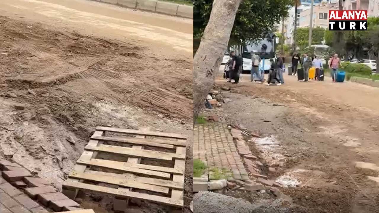 Alanya’nın en işlek bölgelerinden biri olan Atatürk Caddesi’nde bir süredir devam eden altyapı yenileme çalışmaları, sezonun açılmasıyla birlikte tepkilerin odağı haline geldi. Şehre yeni giriş yapan turist grupları, konaklayacakları tesislere ulaşmaya çalışırken kazı çalışmaları nedeniyle çamurla kaplanan yollardan geçmek zorunda kaldı.