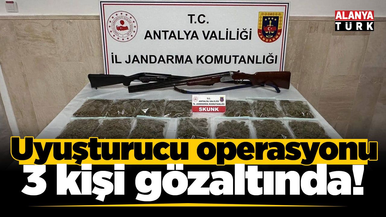 İl Jandarma Komutanlığı tarafından yürütülen çalışmalar kapsamında 3 şüpheliye ait ikamet ve araçlarda arama yapıldı. Aramalarda 16 kilo 880 gram skunk uyuşturucu maddesi, 2 tüfek ve 1 hassas terazi ele geçirildi.