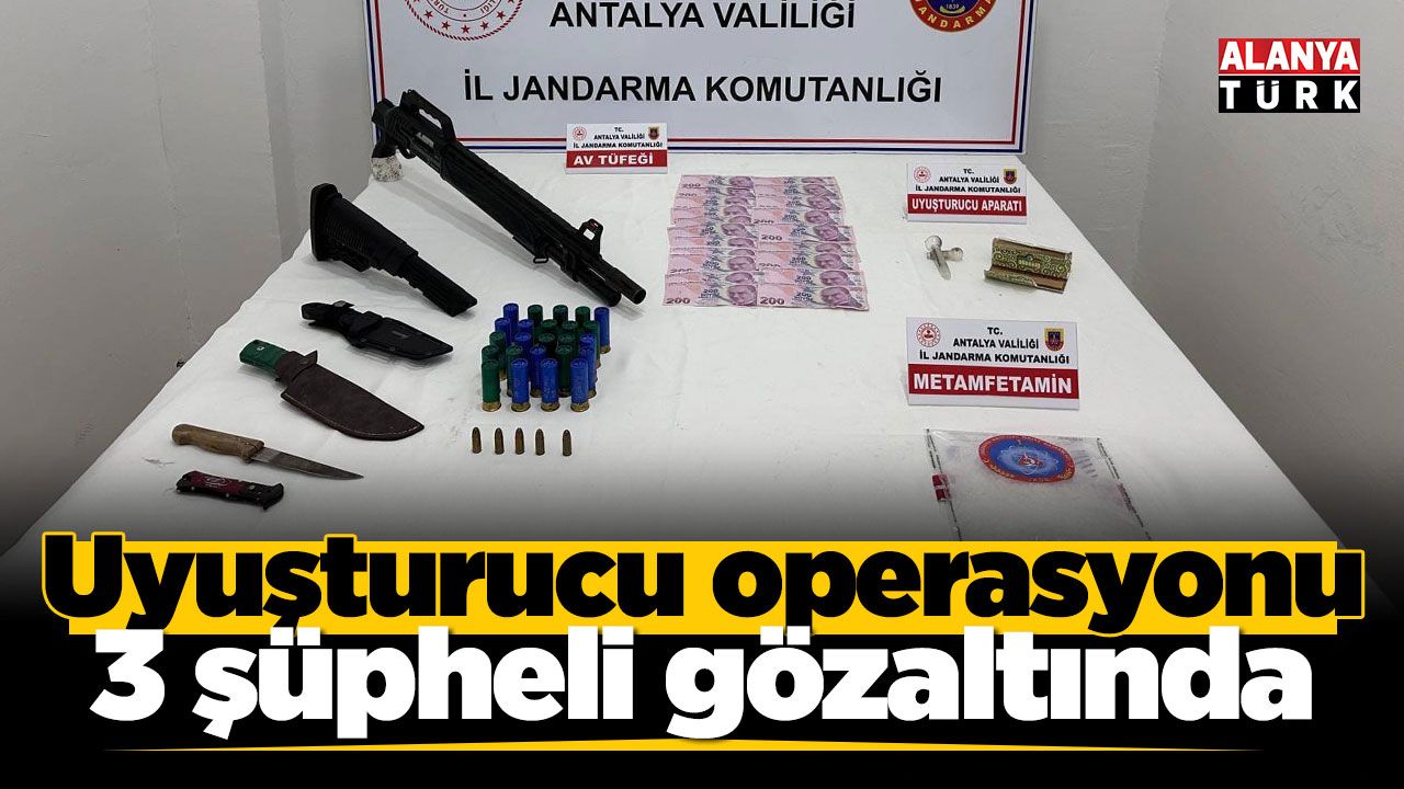 Antalya İl Jandarma Komutanlığı tarafından yürütülen çalışmalar kapsamında, Antalya Cumhuriyet Başsavcılığı'nın talimatları doğrultusunda Kepez ilçesinde belirlenen adreslere operasyon düzenlendi. Operasyon kapsamında 3 şüpheli şahsın ikametinde yapılan aramalarda uyuşturucu madde ve çeşitli suç unsurları ele geçirildi.